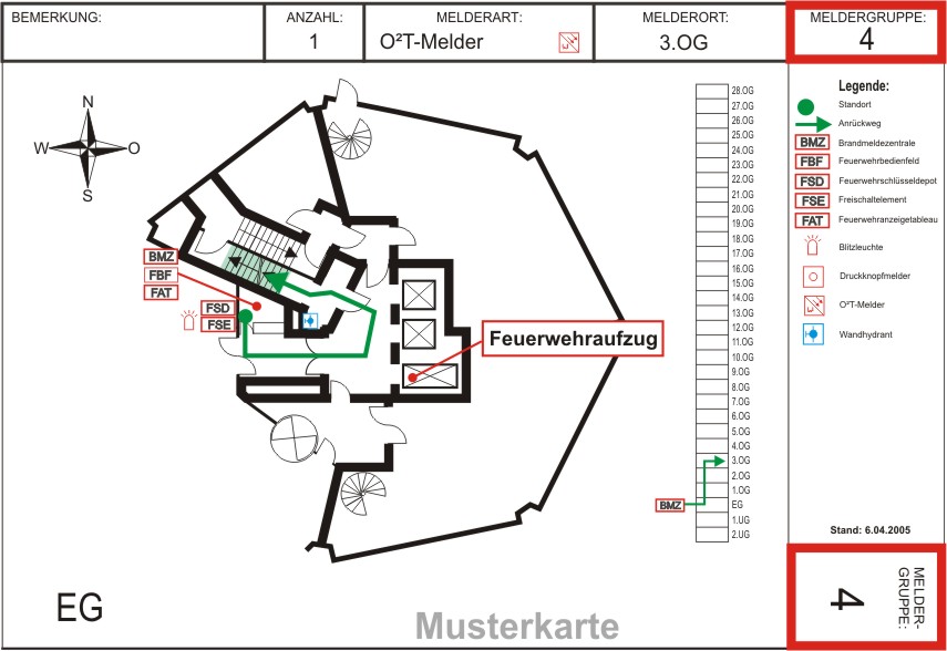 Wegbeschreibung vom Standort der Brandmeldezentrale